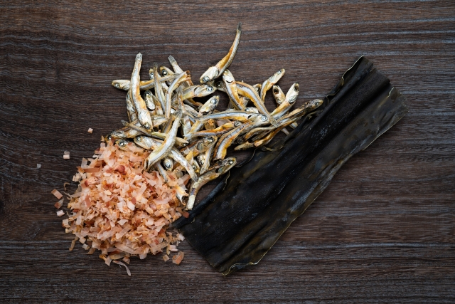 昆布、鰹節、煮干し、干し椎茸の出汁